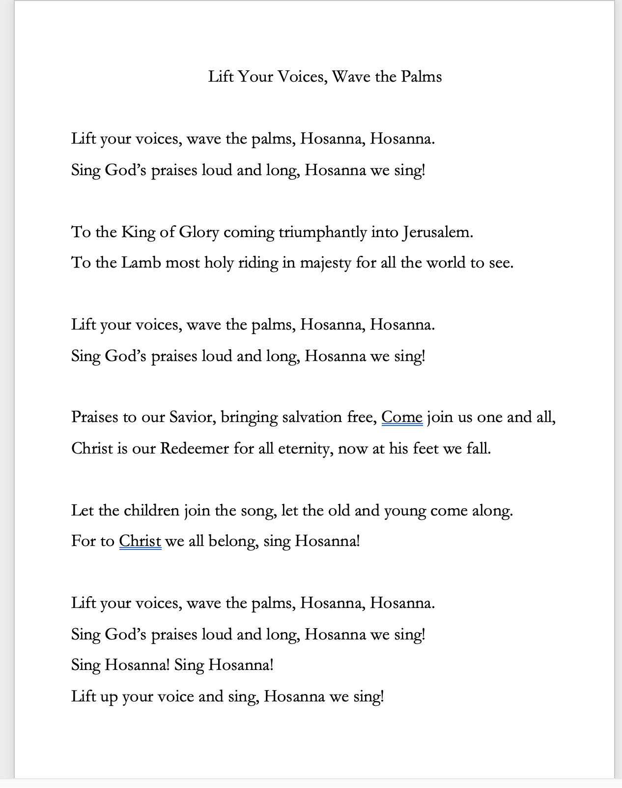 • March 29 - PALM SUNDAY - SUNDAY SCHOOL at 9:30am SONG AUDIO, LYRICS